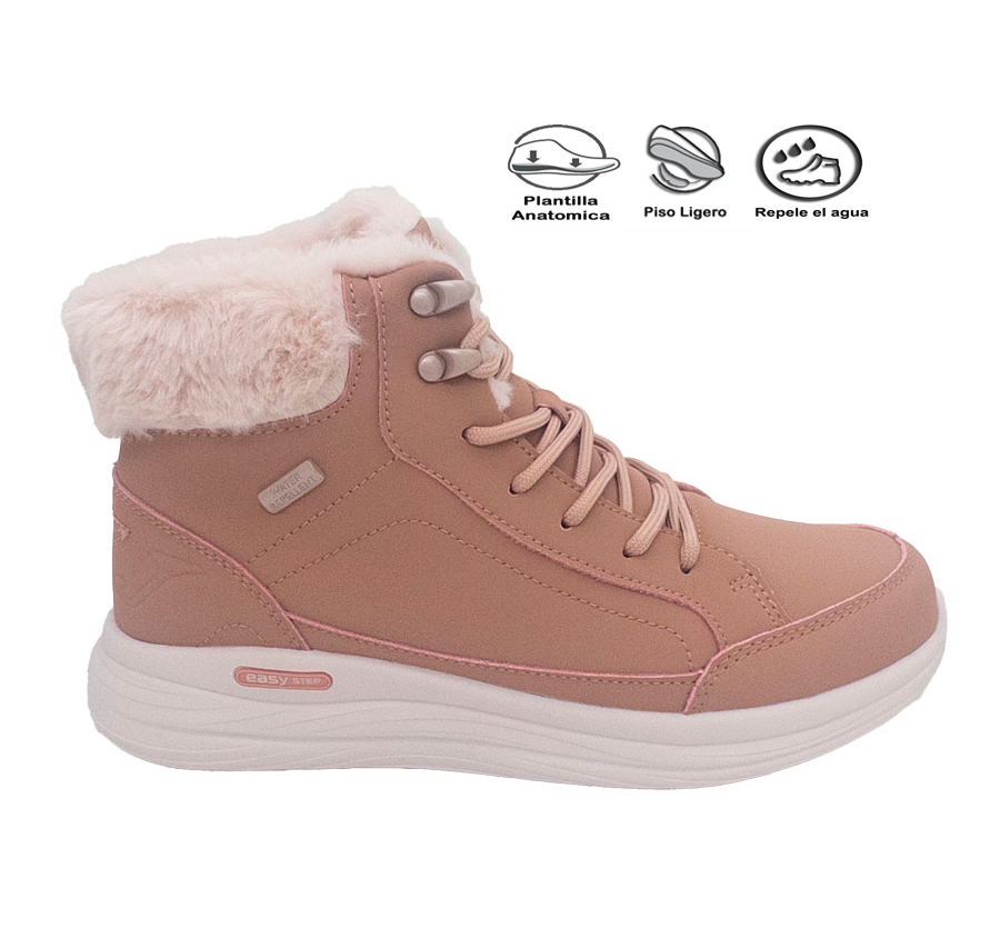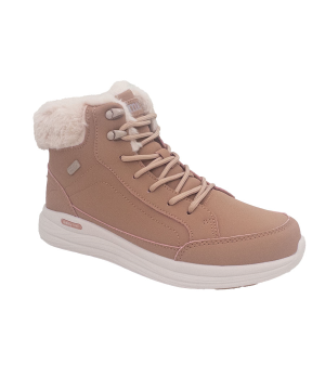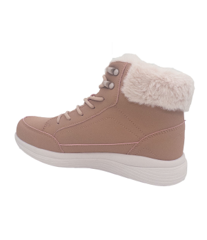Stivale invernale da donna molto comodo e caldo, realizzato in similpelle idrorepellente rosa. Pratica chiusura con lacci sul davanti per una calzata facile. Punta e tallone rinforzati, entrambi in rosa. Ulteriori dettagli includono cuciture in tinta, bordo in pelliccia rosa sul bordo superiore dello stivale, logo del marchio stampato e targhetta idrorepellente. Morbida fodera in tessuto stile Suatex e pratica soletta interna imbottita in MEMORY FOAM rimovibile che calza come un guanto per attutire e attutire gli urti